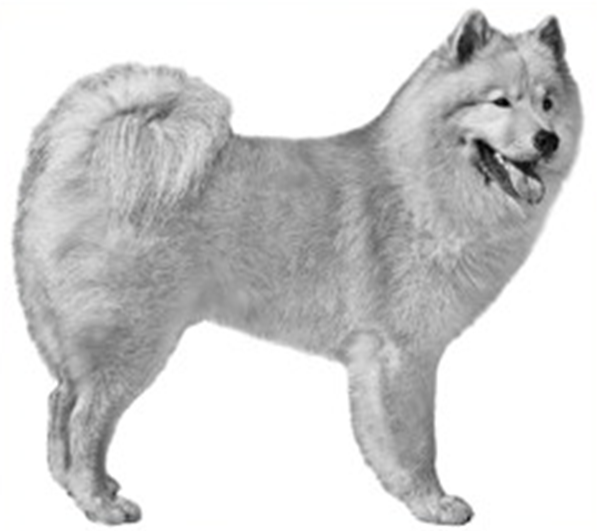 ОБЩИЙ ВИД: Сбалансированная, правильно сложенная шпицеобразная собака среднего размера, со стоячими ушами и шерстью различных окрасов. Шерсть должна быть такой длины, чтобы были видны пропорции корпуса. Со средним костяком.