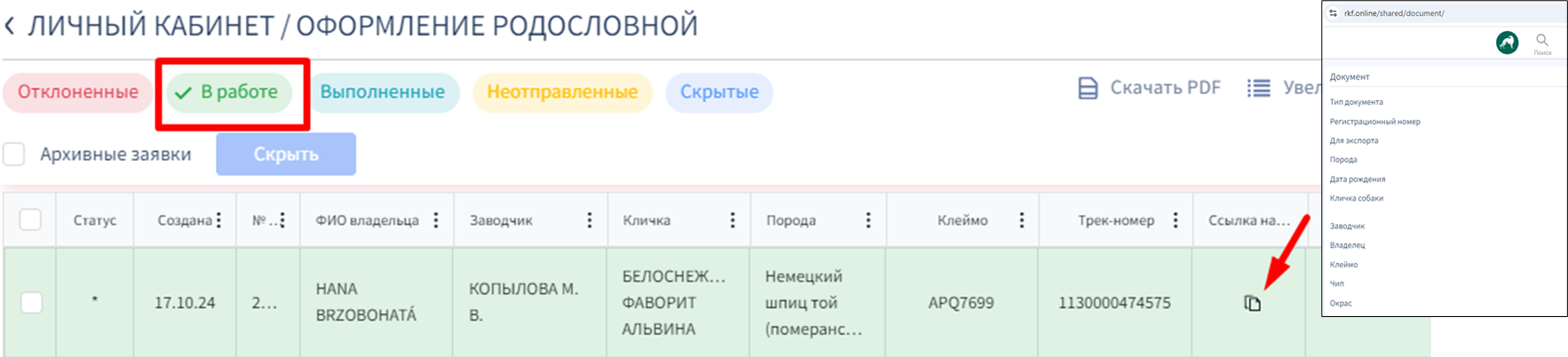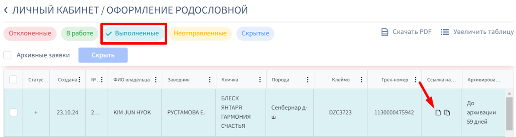 СТАТУСЫ ЗАЯВОК И ОТОБРАЖЕНИЕ ЭЛЕКТРОННОЙ ВЕРСИИ РОДОСЛОВНОЙ