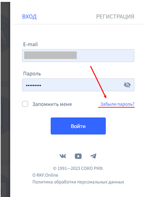 Если вы не помните пароль от личного кабинета на RKF.Online, вы можете сбросить старый пароль и ввести новый.