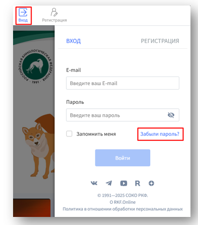 Если вы не помните пароль от личного кабинета на RKF.Online, вы можете сбросить старый пароль и получить новый. Для этого: