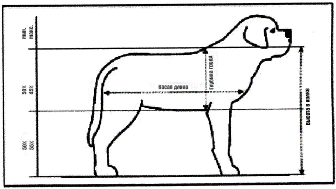 - Идеальное отношение высоты в холке к глубине грудной клетки указано на рисунке, приведенном ниже.