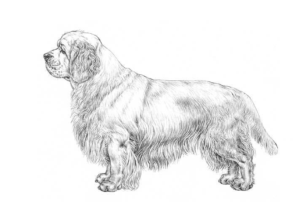 ОБЩИЙ ВИД: Сбалансированный, с хорошим костяком, активный, с вдумчивым выражением, весь вид указывает на силу. Кламбер должен быть крепким, спортивным и способным целый день работать в поле.