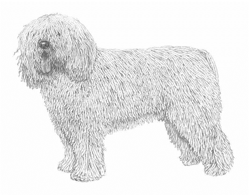 ШЕРСТЬ: Всегда курчавая и пушистой текстуры. Короткая шерсть кудрявая, длинная может быть шнуровой. Стрижка допускается, но шерсть везде стрижется равномерно и оставляется одинаковой длины; «модельная» стрижка не допускается.