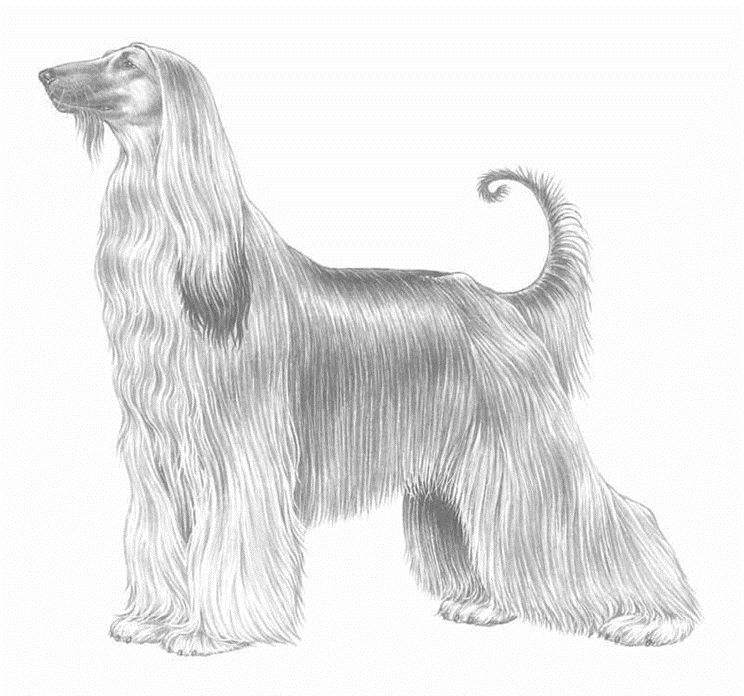 КРАТКАЯ ИСТОРИЧЕСКАЯ СПРАВКА: Первые Афганы появились в Великобритании в начале 1900-х годов, и один из них, по кличке Zardin, в захватывающем стиле выиграл в 1907 году Кристал Пэлас Шоу в Лондоне. Эта порода также известна под названием Тази, что поддерживает ее сходство с русскои породои Тазы. Будучи типичным представителем мира борзых собак, Афган, как следует из его названия, происходит из горного Афганистана. Это охотник, которыи будет преследовать добычу при любои возможности. В настоящее время Афган также эффектная шоусобака, которая должна сочетать силу и достоинство с длиннои , шелковистои шерстью и иметь восточное выражение.