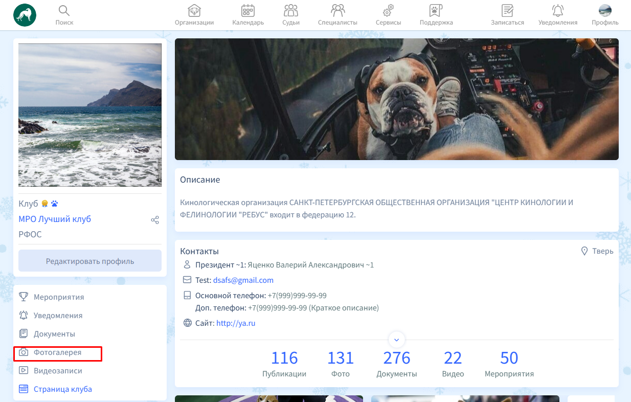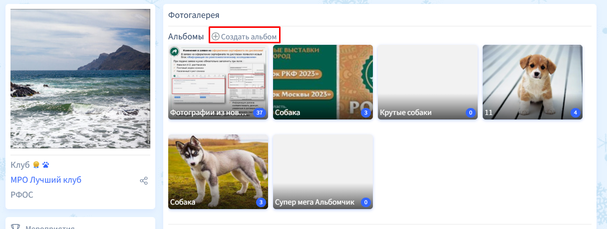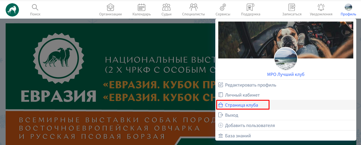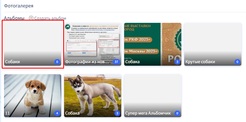 Вы можете добавить изображения своих четвероногих друзей на страницу вашего питомника или клуба.
