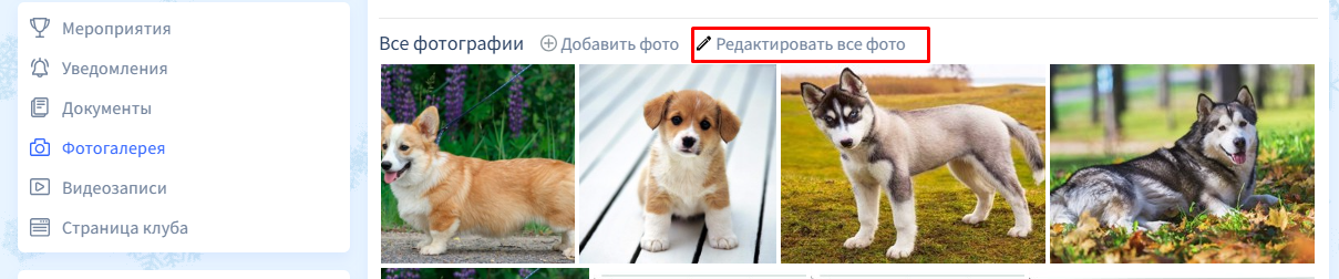 Для удаления загруженных изображений вам необходимо перейти к разделу редактирования фотогалереи клуба или питомника.