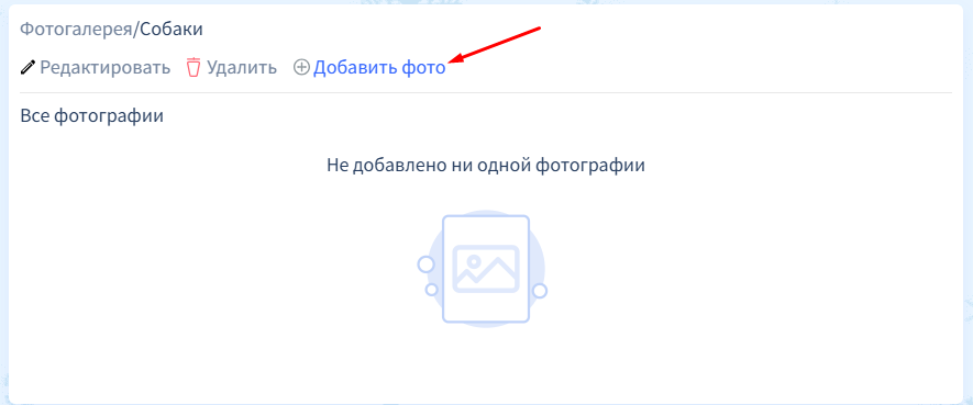 Для добавления изображений вам необходимо перейти к странице вашего клуба или питомника.