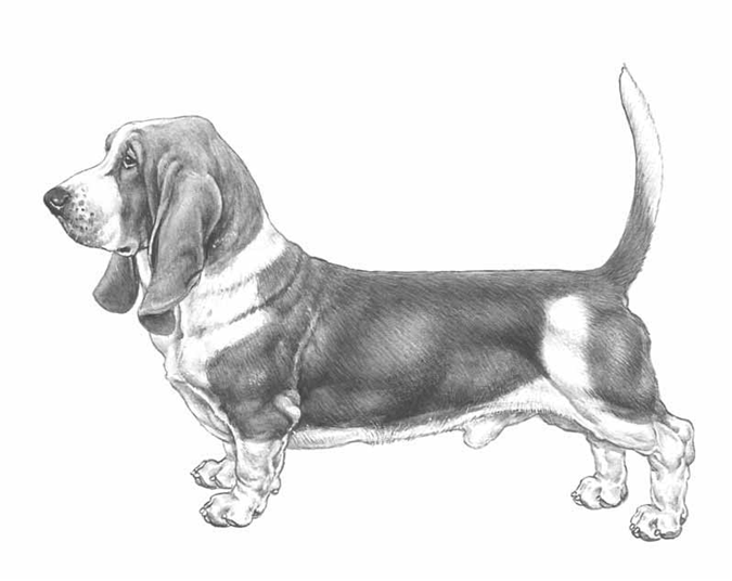 КРАТКАЯ ИСТОРИЧЕСКАЯ СПРАВКА: Принято считать, что Бассет был выведен монахами в средние века во Франции для охоты в густых зарослях с собакой, которая могла бы держать нос близко к земле. Хотя эта порода имеет близко родственное отношение к целому семейству французских бассетов, она получила свое окончательное формирование в Британии. Бассет способен гнать зверя, зайца, настойчиво преследуя его, преодолевая большие расстояния, двигаясь в относительно медленном темпе.