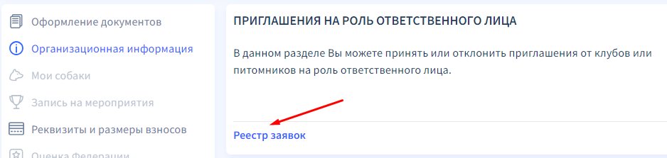 После того, как физическое лицо примет заявку на роль заявителя/актировщика, его статус в реестре заявок Клуба автоматически поменяется на "Принята" и Клуб может подавать документы.