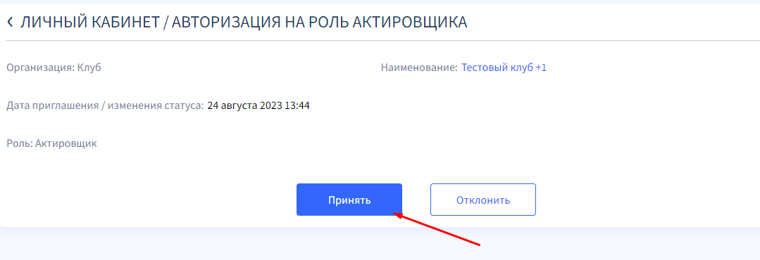 Внимание! После того, как был сделан этот пункт, физическому лицу необходимо зайти в свой личный кабинет и подтвердить приглашение от Клуба.