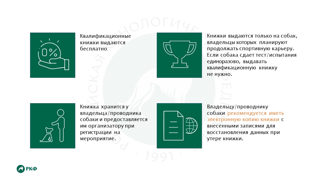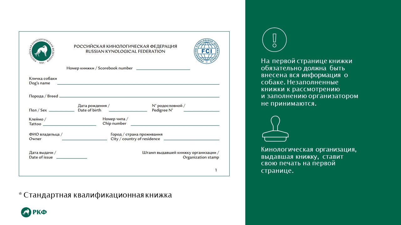 Обращаем ваше внимание, что в РКФ обновлен формат квалификационной книжки собаки. Просим вас внимательно изучить его и правила пользования документом.