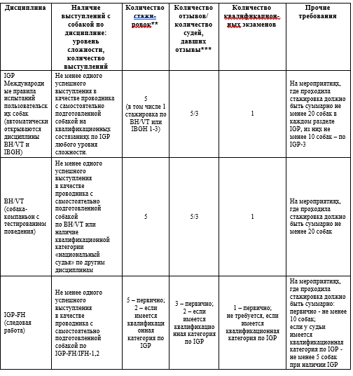 *** - квалификационная категория «национальный судья сертификатных состязаний во всех дисциплинах присваивается при наличии звания «национальный судья испытаний и квалификационных состязаний».