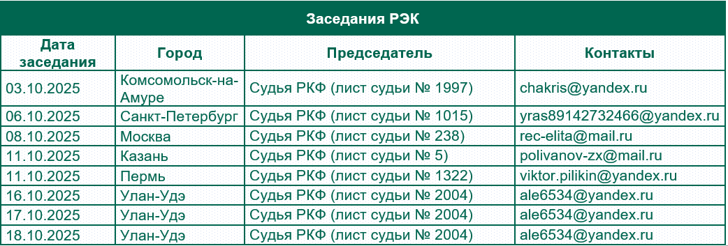 Календарь заседаний РЭК