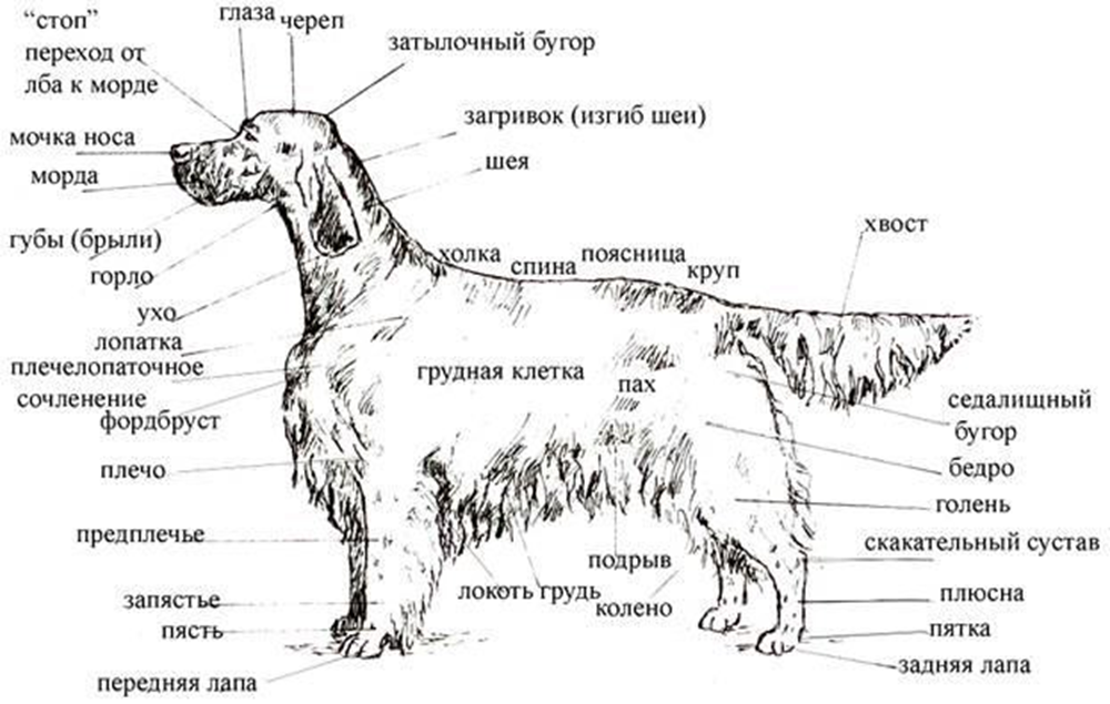 ЗАДНИЕ КОНЕЧНОСТИ: хорошо омускулены, в т. ч. и голень; длинные от таза до скакательного сустава.