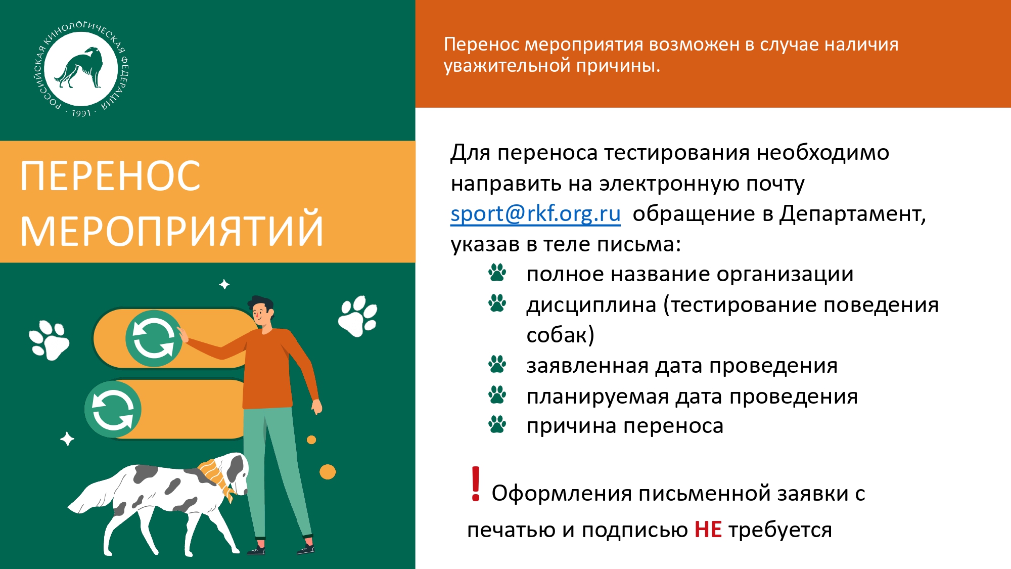 Вебинар «Новая редакция положения РКФ «О проведении тестирований, испытаний и состязаний собак (кроме испытаний и состязаний охотничьих собак)»