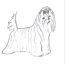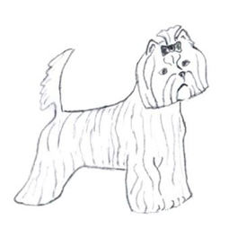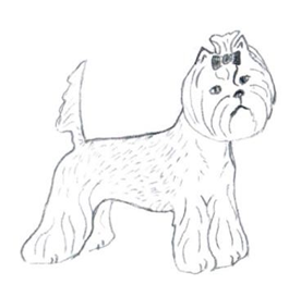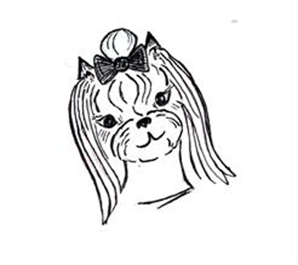 - Вариант стрижки головы - примерная схема. Морда формируется аккуратным овалом и шаром, оставляются очесы на ушах, шерсть челки убирается под бант.