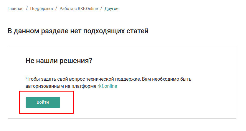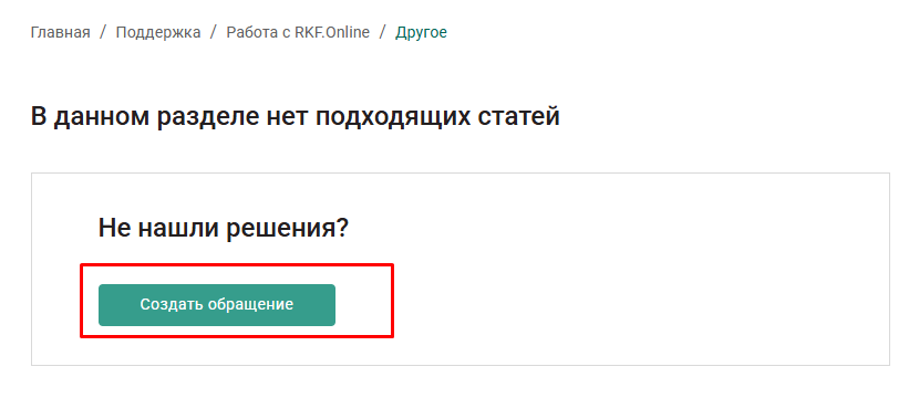 Вы попадете на страницу https://info.rkf.online/. Пролистайте вниз до окошка "Не нашли решение?", нажмите кнопку "Обратиться в поддержку":