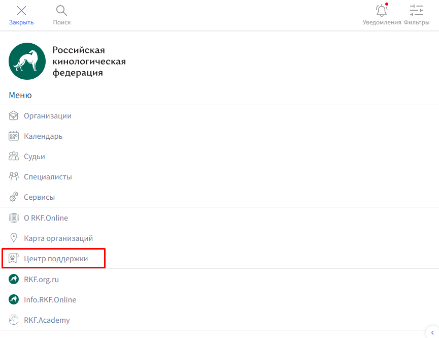 2. Как оставить обращение в техподдержку в мобильной версии RKF.Online