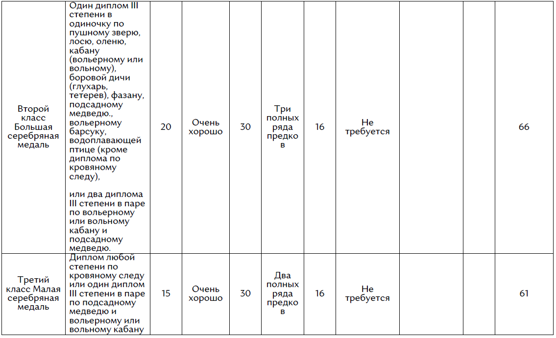 а) рабочий сертификат РКФ – по одному баллу за каждый рабочий сертификат по разным видам дичи – 1 балл;