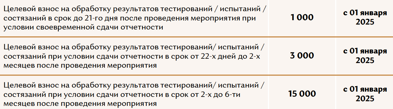Размеры взносов в РКФ в 2025 году (Без НДС)