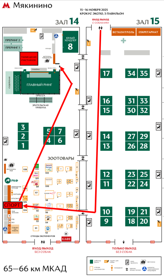 Проход с собаками исключительно через гейты 15 зала (со стороны метро Мякинино)