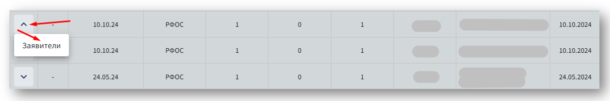 Выберите нужную заявку, раскройте её, нажав на стрелочку справа, чтобы отобразить данные.