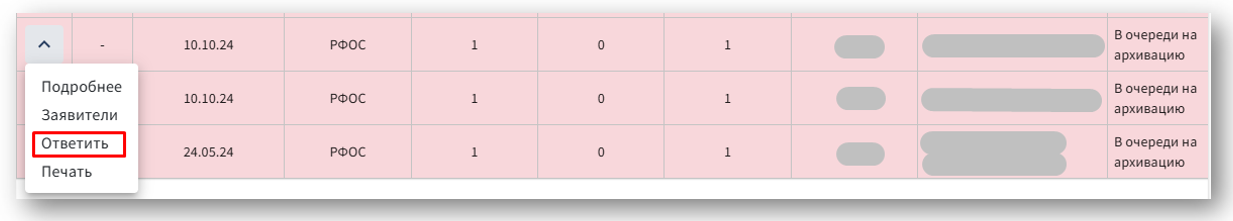 3. Найдите в списке нужное обращение по номеру пакета или дате регистрации.