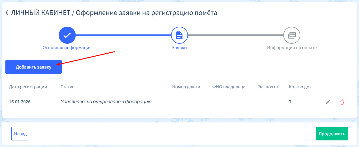 6. К данному обращению можно добавить другие заявки через кнопку "Добавить заявку" и отправить его в Федерацию.