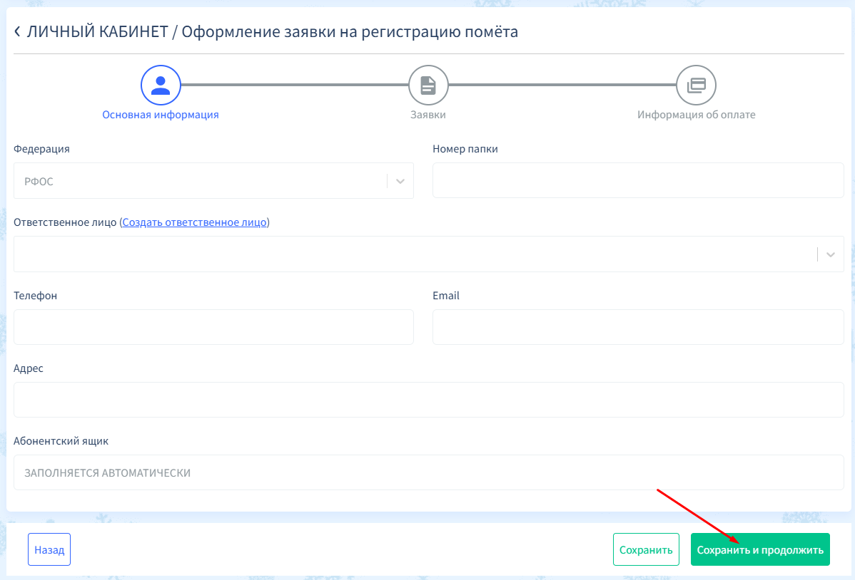 3. Откроется страница обращения с первым этапом "Основная информация", данные которого можно отредактировать или, если все корректно, нажать "Сохранить и продолжить" и перейти на следующий этап.