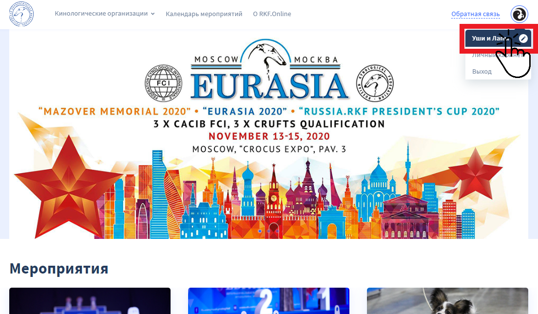 Теперь вы вошли в ваш аккаунт на платформе RKF.Online, но он пока не активирован. Для активации нажмите на изображение в правом верхнем углу, а затем в появившемся меню кликните на название вашего клуба.