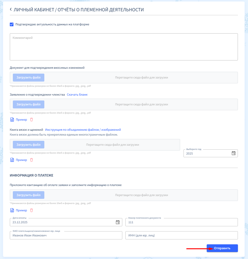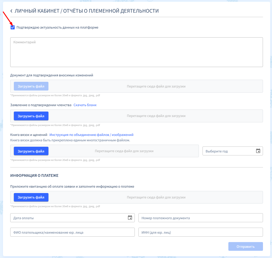 Если вам необходимо внести изменения в данные, которые были предоставлены ранее, заполните первые два поля "Комментарий" и "Документ для подтверждения вносимых изменений".