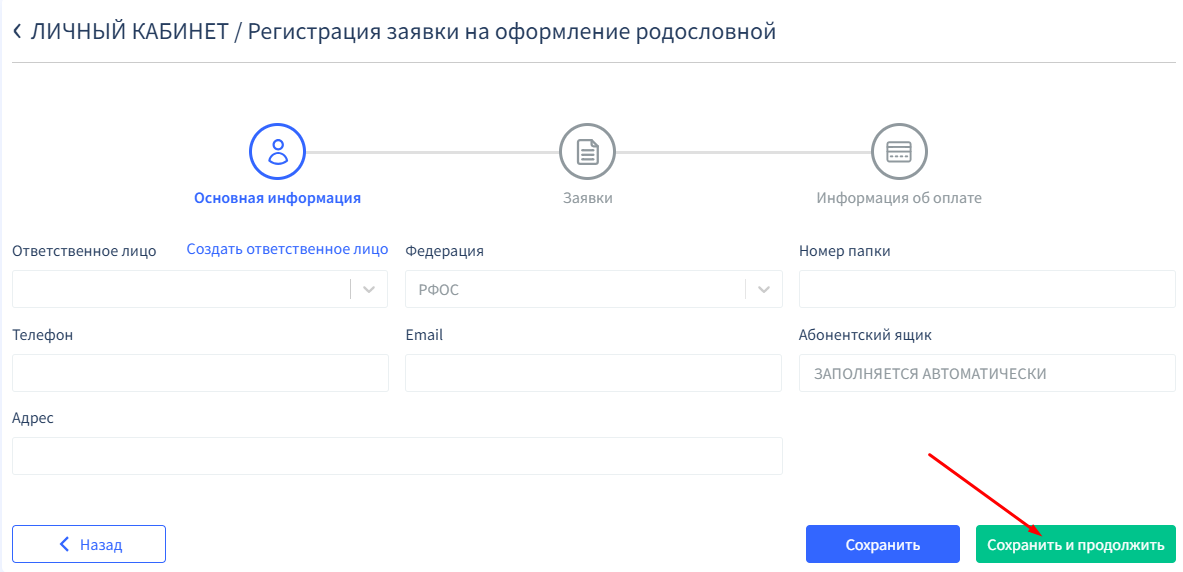 3. Откроется страница обращения с первым этапом "Основная информация", данные которого можно отредактировать или, если все корректно, нажать "Сохранить и продолжить" и перейти на следующий этап.