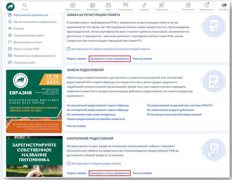 1. Зайти в Личный кабинет -> выбрать блок с заявками -> перейти в «Проверить статус документа».