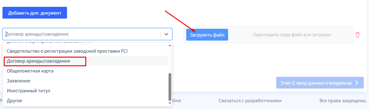 3) добавьте документ о совладении через кнопку "Загрузить файл".