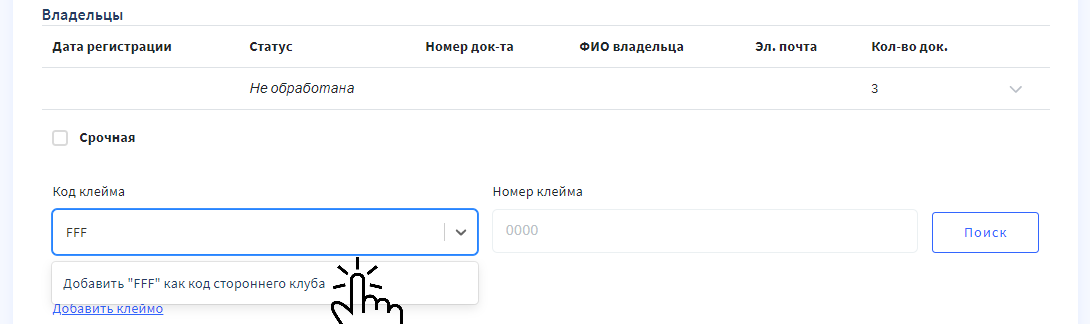 Вам необходимо встать курсором мыши на поле "Кода клейма", нажать на него — оно станет синим, после этого необходимо ввести нужный код (даже если в поле введен Ваш код автоматически).