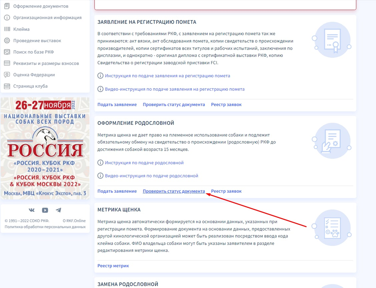 Зайдите на RKF.Online - "Сервисы" https://rkf.online/base-search и введите трек-номер в раздел "СТАТУС ДОКУМЕНТОВ".