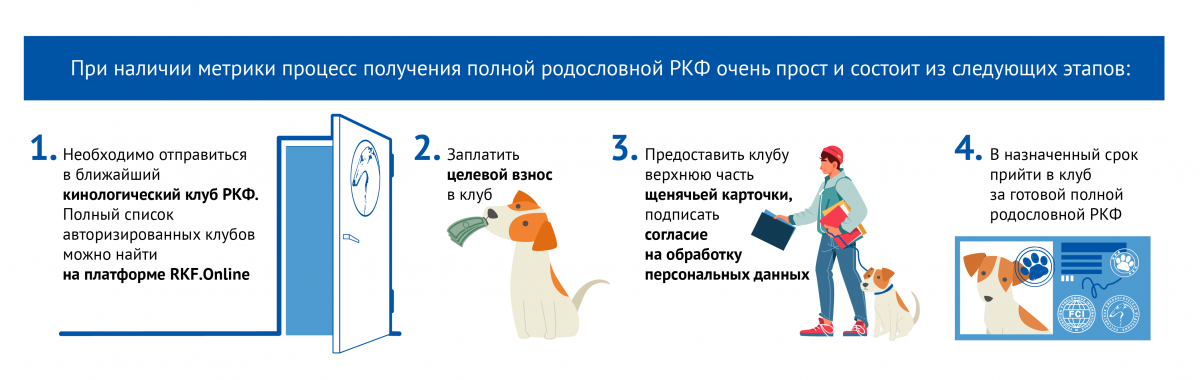 При наличии метрики процесс получения полной родословной РКФ очень прост и состоит из следующих этапов: