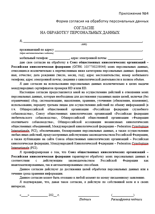 – заполненный бланк договора-заявки, подписанный владельцем собаки и специалистом, который проводил рентгенологическое исследование;