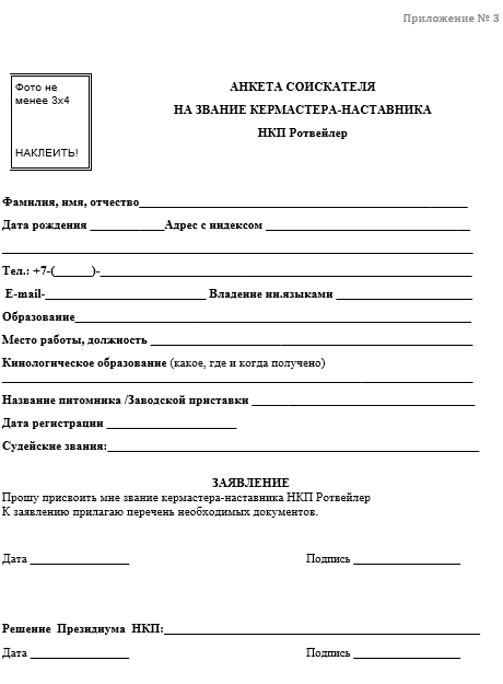 4.6. Ежегодно Президиум НКП передает в КК РКФ по экстерьеру. У каждого кёрмастера в судейском листе напротив отметки «порода ротвейлер» будет стоять отметка «кёрмастер» или «кёрмастер-наставник»