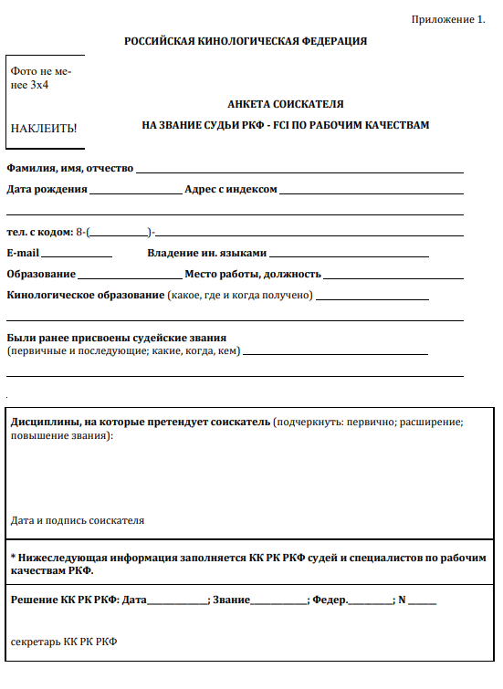7.3.3. Ходатайство от кинологической организации (клуба) в системе РКФ, в которой состоит судья.