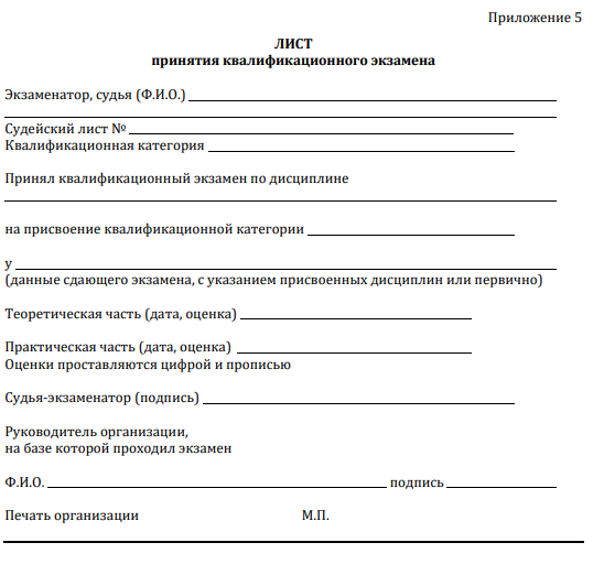 7.1. Звание «Судья-экзаменатор» присваивается судьям, выполнивших требования, приведенные в Приложении 8.