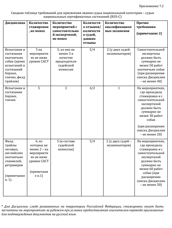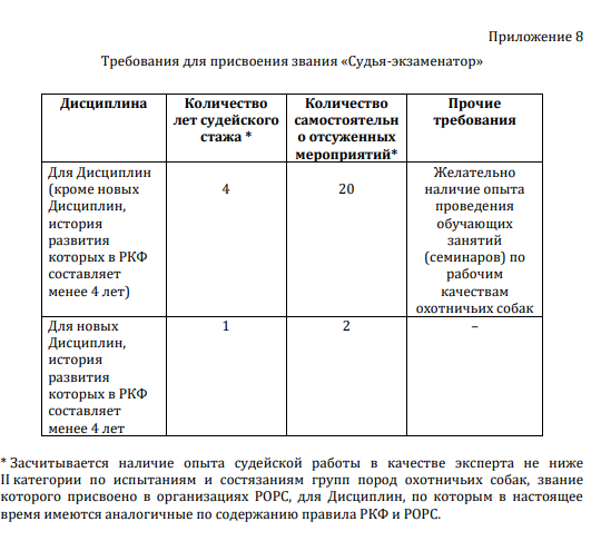 4.2.7. К соискателям, указанным в п.4.2.4, 4.2.5, относятся как действующие судьи РКФ по рабочим качествам (при расширении списка дисциплин, при повышении имеющейся категории), так и эксперты РОРС, не имеющие звания судьи РКФ по рабочим качествам. Применить п.4.2.4., п.4.2.5 для присвоения категории по каждому виду испытаний охотничьих собак возможно однократно.