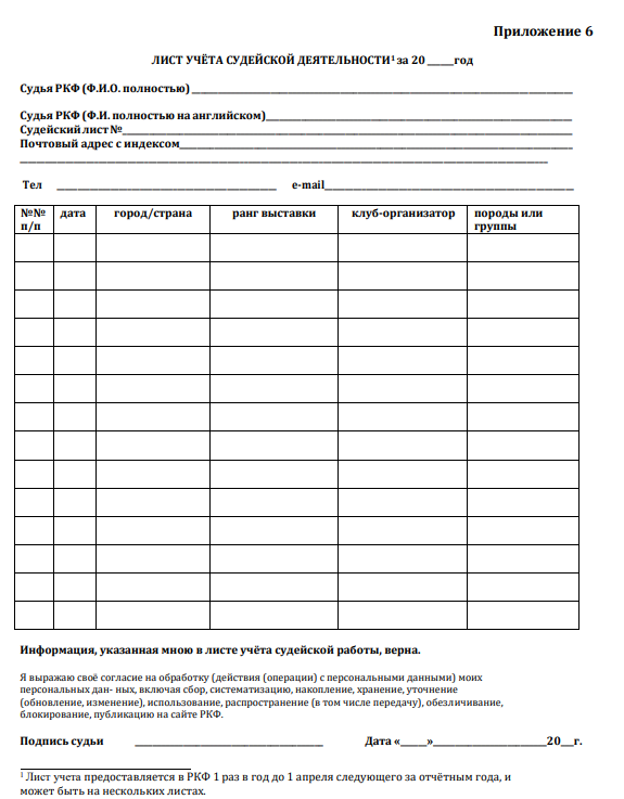 - сводная ведомость с отметками о выставках (для судей, расширяющих список пород в соответствие с п.4.1.);