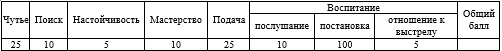 Примечание: Оценка постановки, послушания и отношения к выстрелу производится по совокупности всех работ. Если недостаток, снижающий расценку, проявляется при выполнении нескольких работ или подач, то в сумме баллов он учитывается один раз. |
