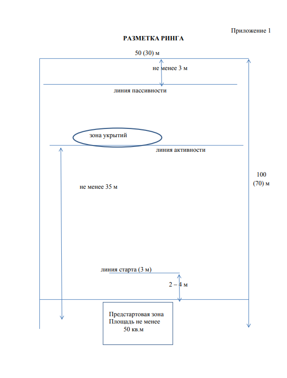 Примерная внутренняя разметка ринга для состязаний приведена в Приложении 1.