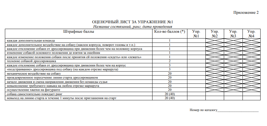 Все собаки, принимающие участие в состязаниях последовательно выполняют: упражнение №1, упражнение №2, упражнение №3 и упражнение №4.