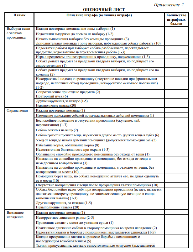 6.2.2. При оценке исполнения навыка необходимо учитывать породу собаки.