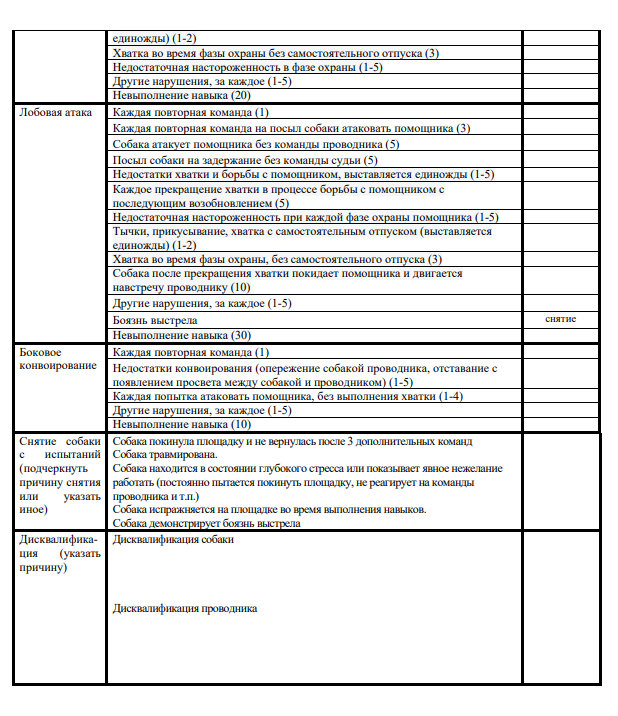 5.1.2. Во время выполнения навыка «лобовая атака» производится проверка на отношение к выстрелу. Собаки, демонстрирующие боязнь выстрела, снимаются с испытаний.