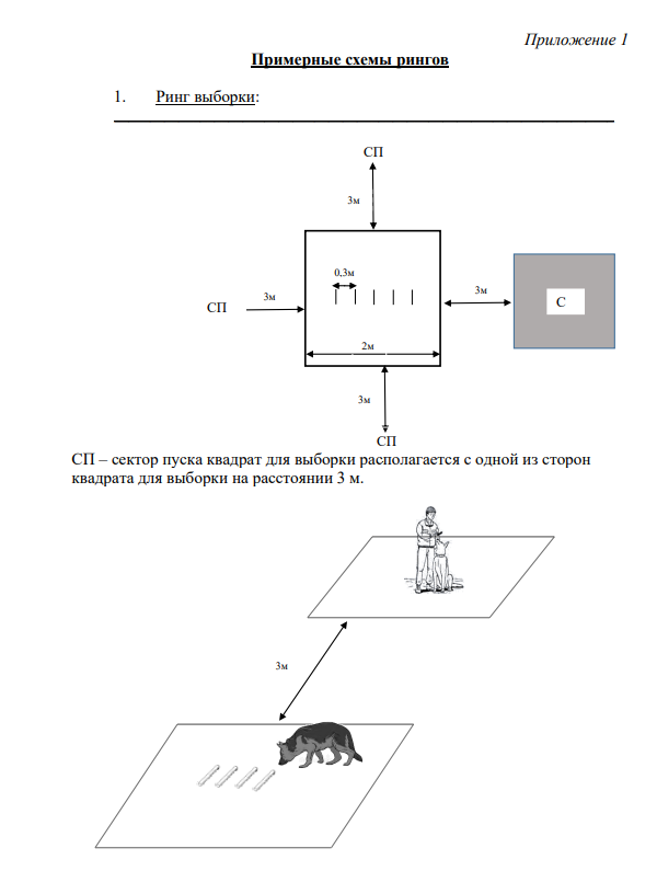 5.2.2.2. Проводник с собакой подходит к судье и останавливается примерно в 2 метрах от него, отстегивает поводок, убирает его в карман или пристегивает вокруг корпуса, представляется и докладывает о готовности к испытаниям.