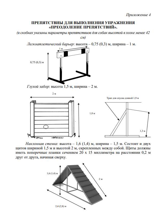 2.1.4. Значения, указанные в скобках при описании разметки навыков, означают расстояния, используемые для проверки навыков у собак, высотой в холке менее 42 см).